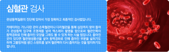 관상동맥질환의 진단에 있어서 가장 정확하고 최종적인 검사법입니다.
